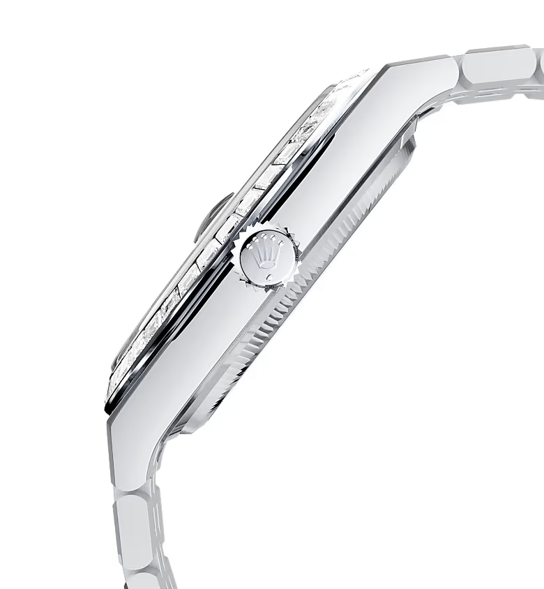صُمّم سوار جوبيلي المسطّح خصيصًا لهذه الساعة ويُعد تحديثًا لسوار جوبيلي الأيقوني. يتميّز تصميم سوار جوبيلي المسطّح بأن جميع وصلاته مسطّحة ويندمج بسلاسة مع علبة أويستر ليُشكّل كيانًا متوازنًا ومتناغمًا مع التشطيبات الساتانية المصقولة تارةً والتقنية تارةً أخرى.