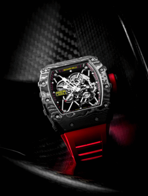 استغرقت عملية إعداد هيكل نظام للحركة ساعة RM 035، الذي يزن 4.3 غرامات فحسب، سنة لوضع اللمسات الأخيرة، بما أنّه لم يكن هناك مجال لأيّ حلول وسط تضمن قوة الحركة أو قدرتها على تحمّل الصدمات، مثلما ينصّ عليه تصديق كرونوفيابل (Chronofiable®.) هذا يعني أنه تم إيلاء الكثير من الاهتمام لاختبار إصدارات عدة لصفائح ارتكاز محفورة الهيكل مصنوعة من التيتانيوم، قبل هيكلتها بشكل نهائي. تضمن كل من صفيحة الارتكاز المصنوعة من التيتانيوم الذي تمّت معالجتها بواسطة تقنية الترسيب المادّي للبخار (طلاء PVD) والجسور المدمجة وأداة التوازن المصنوعة من التيتاليت (Titalyt ®)، صلابة متميّزة وتسطيحاً دقيقاً. يحتوي عيارRMUL1، الذي يضم 24 قطعة مجوهرات وينبض بتردّد قدره 4 هيبرتز، على نابض توازن حرّ ذي قصور متغيّر.