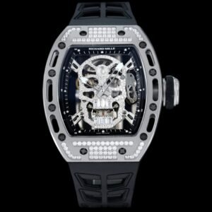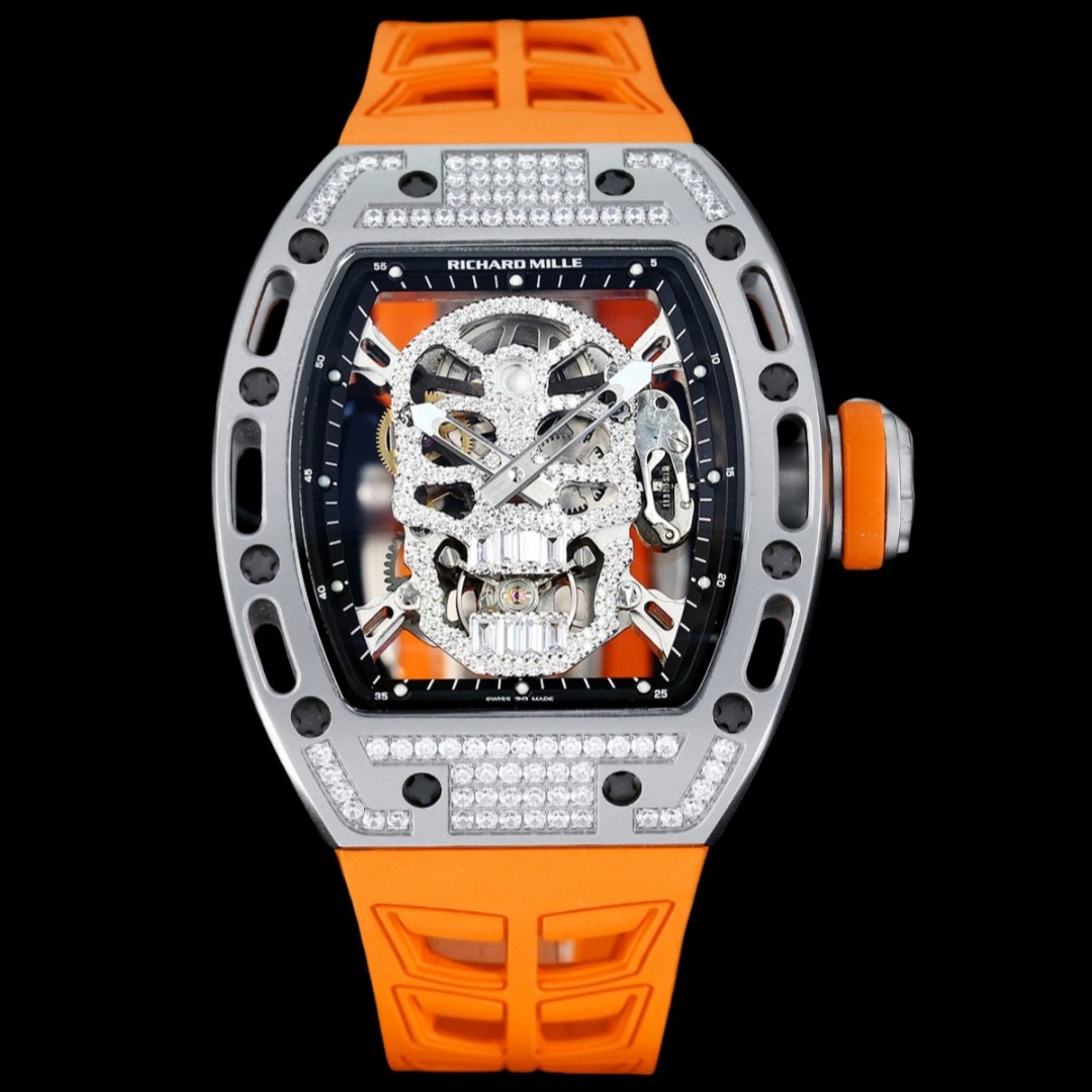 سلسلة RM052، أحدث نسخة مطورة من سلسلة Ghost Head، سلسلة Skull، علبة من الفولاذ المصقول، مزودة بحركة ميكانيكية أصلية مستوردة، مما يسلط الضوء على النمط الرياضي لهذه الساعة. من خلال المرآة المضادة للوهج، يمكنك رؤية الحركة المجوفة المعلقة. تصميم الجمجمة الجريء والفريد هو الاستبداد ولافت للنظر. لقد استحوذت بنجاح على قلوب العديد من عشاق الساعات. تخلق صورة الجمجمة عالمًا للساعة ليس جامدًا بالنسبة للتيار السائد.