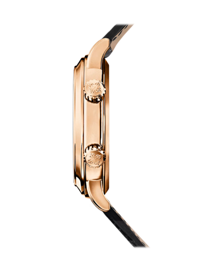 ذهب وردي. القطر: 44 ملم. السماكة: 10.595 ملم. مقاومة للماء حتى 30 متر. ظهر علبة من كريستال الزفير.