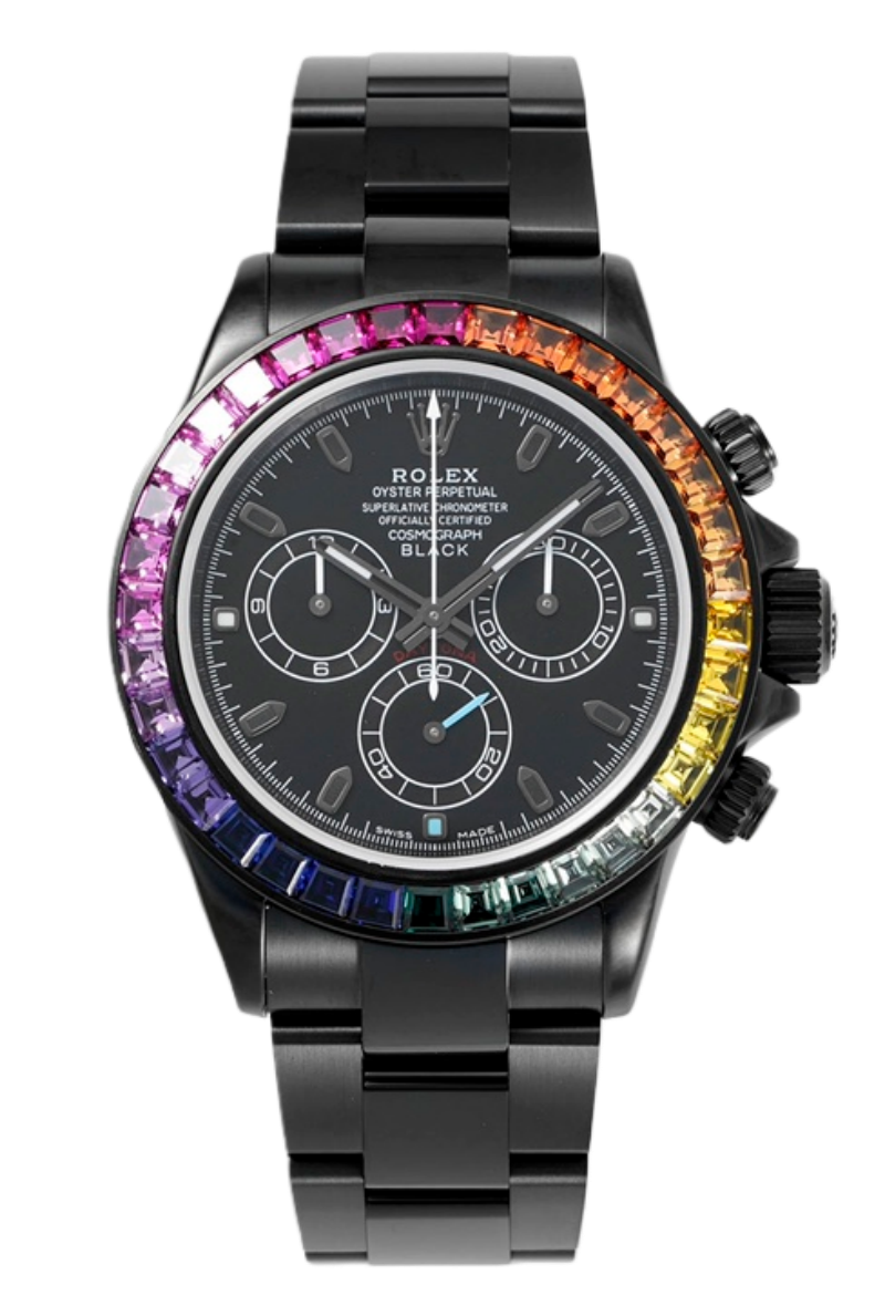 هذه الساعة مُعدَّلة من قبل بلاكن (Blaken) باستخدام أحدث جيل من كاليبر 7750 على أساس رولكس دايْتونا.